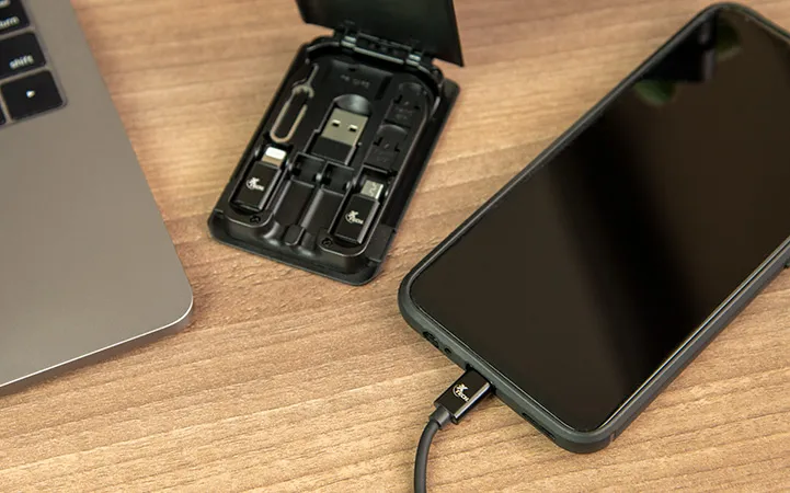- ✅ Incorpora herramientas adicionales como pin de extracción SIM, clip para tarjetas y soporte para celular.
